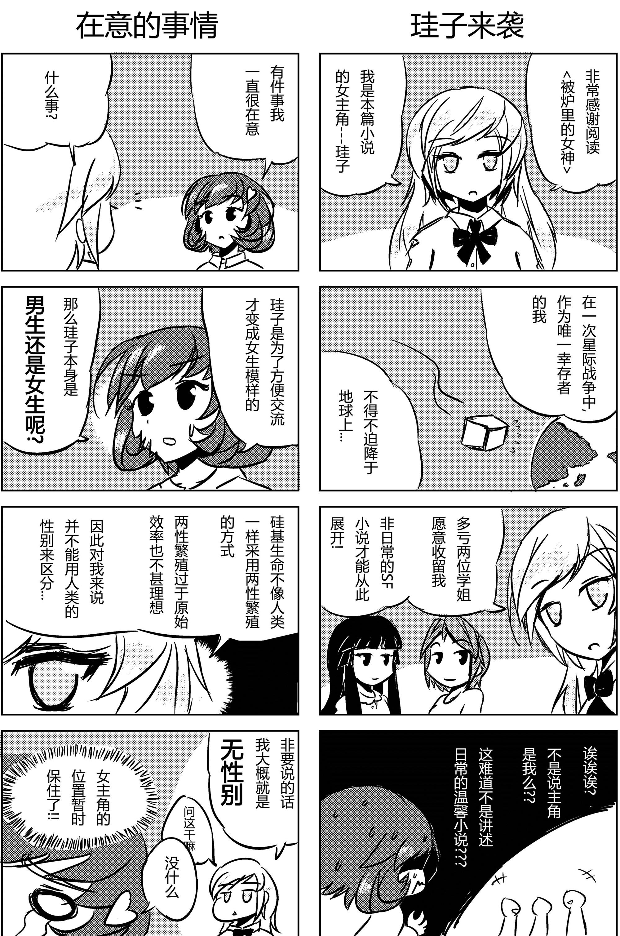 "它是什么?"樋口学姐兴奋地看着我指的地方,而岛崎学姐则淡定自若地喝了口茶水继续听我的下文。
